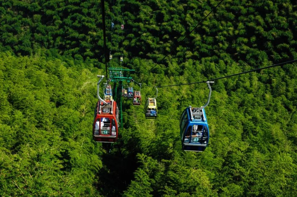 下山筋疲力尽的时候,可以坐缆车,自上而下地观赏竹林。