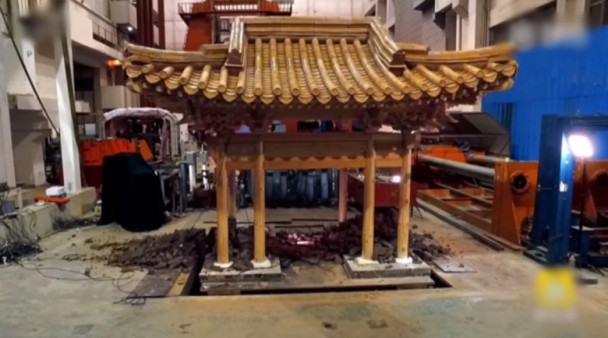 当然不是拿真的故宫去试验,且不说故宫让不让他们用吧,他们也没办法人为的制造大地震,而是请中国的工匠制作了微缩模型,采用的都是同材料同结果,而在一次次的测试中,不断增加地震级别,让人惊讶的是前面这个模型。
