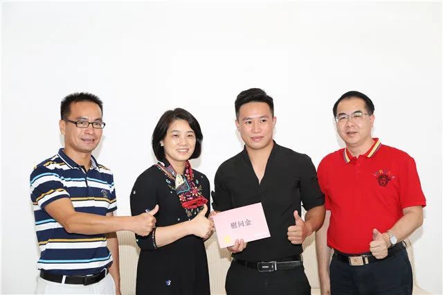 7月6日上午,当地政府表扬贾合强见义勇为的精神,并将慰问金一千元送到他手上。