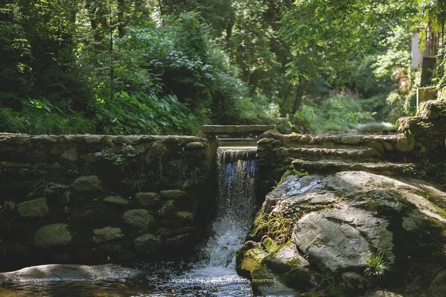 这里是群山中的一处古院落,溪流环绕,绿树成荫。