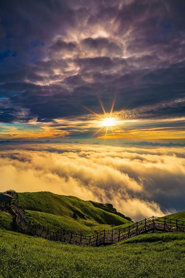 但等爬到山顶,云海奇观、日出日落、星空草甸尽收眼底之时,定会觉得不负此行。