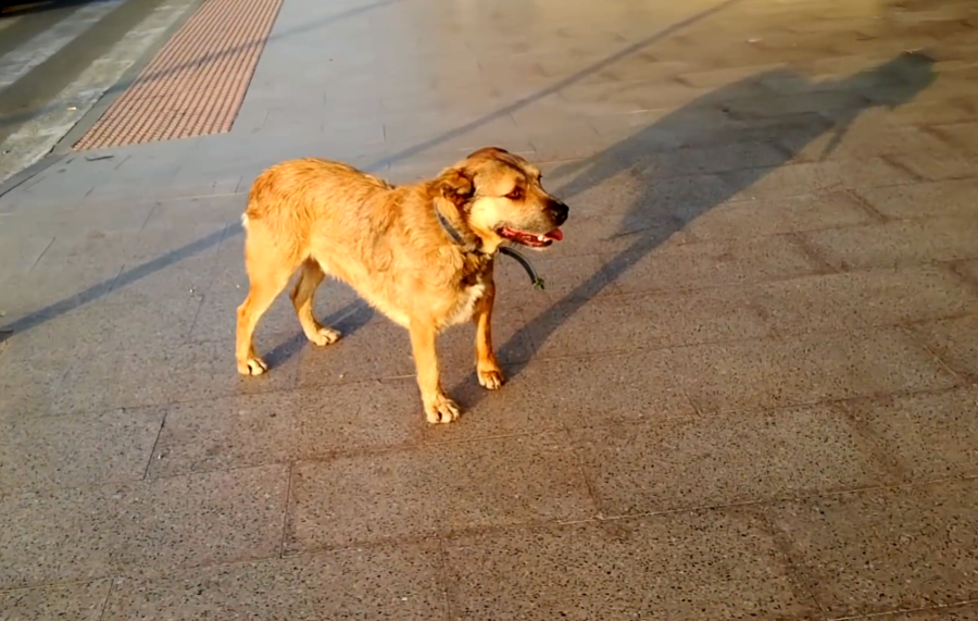 就是这样一只一眼就能看出身患重病的流浪狗,却在一所医院附近频繁出现,在外人看来,它要么是在等人,要么是在求助。
