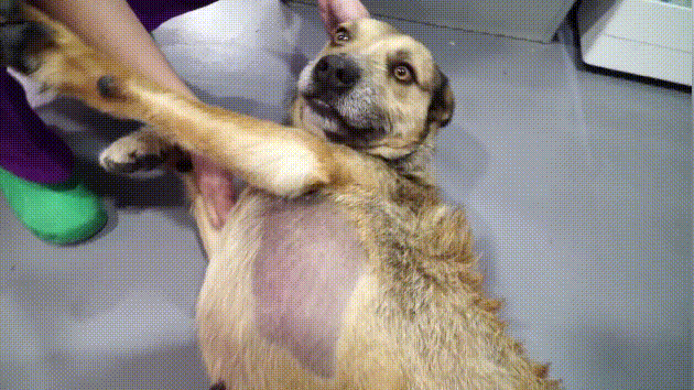 通过检查得知,杜克身上的那个肉球是一颗重达8公斤的急性肿瘤,它肯定被这颗肿瘤折磨了至少有半年时间了。