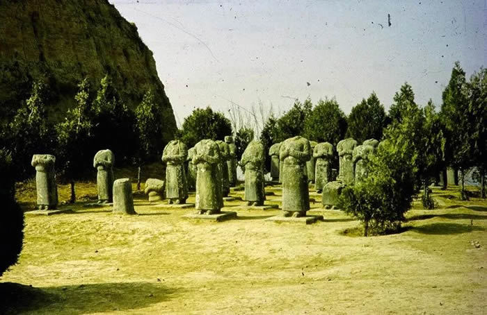 来到乾陵的游客,无一例外都对无头石像产生一个疑问,这些石像的头去了哪里呢?根据晚清最早传教士拍摄的老照片,百年前这些石像就已经没有了头部。事实上,明朝时期这些石像就出现了破坏情况,有诗云:“赤马剥落离倒旁。”