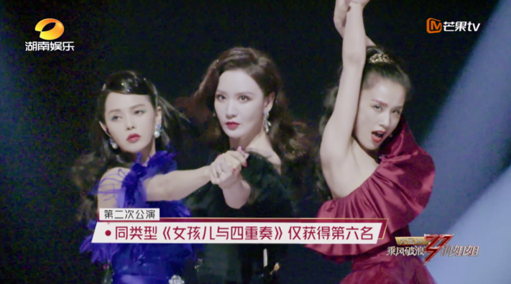 二公演出时黄圣依组同类型的《女孩儿与四重奏》,现场表现很完美排名却相当靠后。