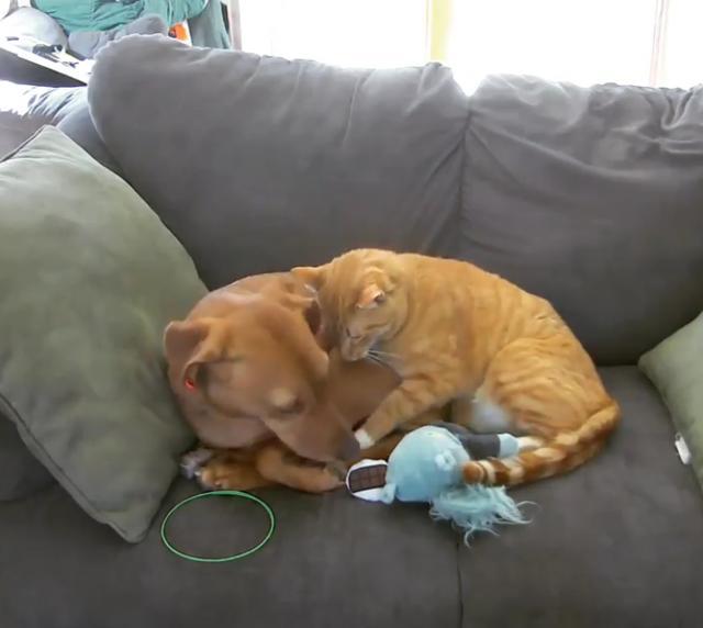 橘猫真的是天使猫咪,大部分都很亲人,甚至一些还能帮主人照顾狗狗。