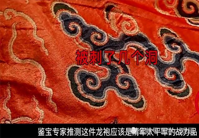 据当时的史料记载,许多次战争满清政府都被太平军战败,许多皇室贵族的珍贵物品也被太平军们掠夺而去。而这黄袍作为战利品,也未尝不是一种合理的解释。况且这龙袍之上有几处破损,像是利器划过一般,有很大的可能性就是当时战争时候划破的。