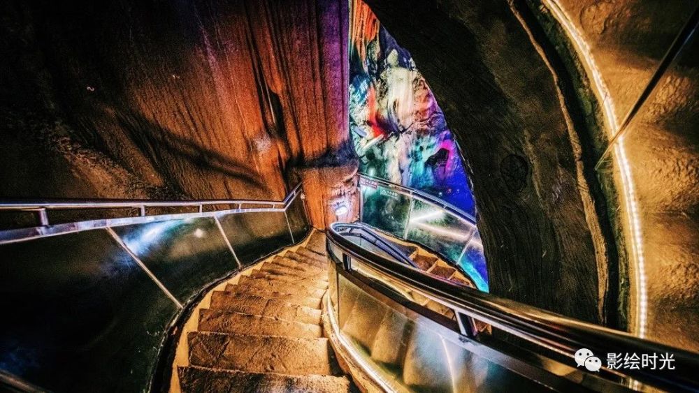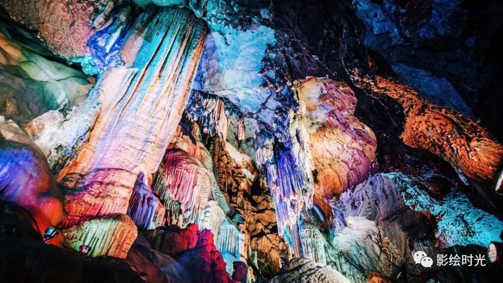 在游览过程中七彩灯光将溶洞世界映衬得更加光怪陆离,各色石笋石柱千姿百态,在导览绘声绘色的故事讲述里,我们也随之脑洞大开。