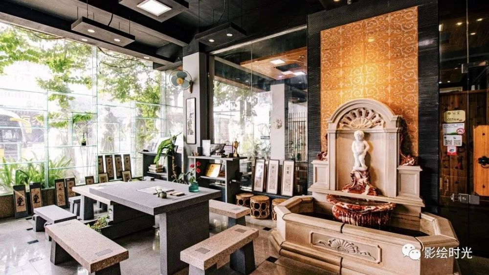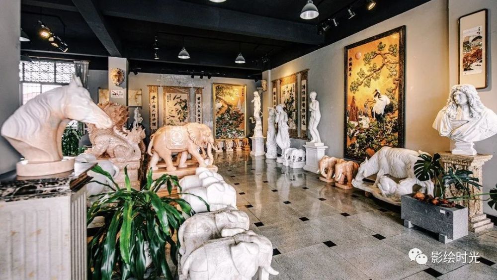 山城石艺还做了许多场景化的工艺品陈列,置身在这样的环境里,打卡一张小景照,别人都看不出是在店铺或厂子里,这样的到此一游也蛮有趣的。