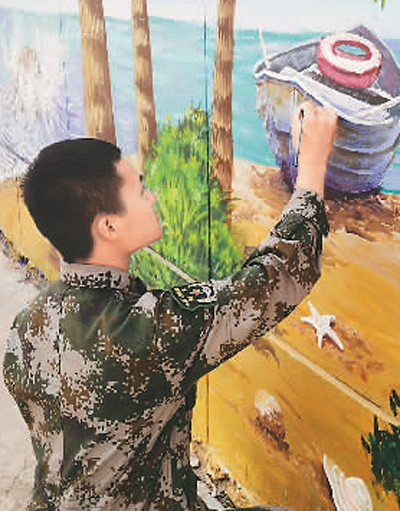 下连后,我认真对待每一项工作,在担负哨兵、连值、帮厨、演讲等任务中学会了很多,还成了连队的理论小教员。同时因为美术特长,单位安排我为营区的围墙绘画,虽然牺牲了很多休息时间,但看着一面面墙绘给营区增添了色彩,感觉所有的付出都值得。