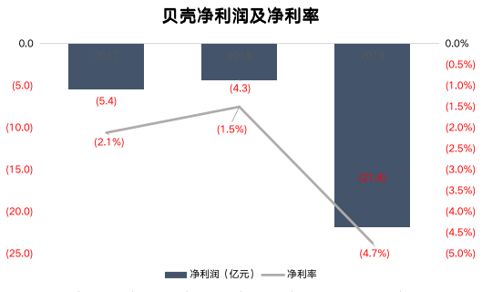 从已披露的季度数据来看,贝壳在过去三年录得累计亏损31.5亿元。综合来看,成本高、赚得少、花得多,是贝壳亏损的三个主要原因。