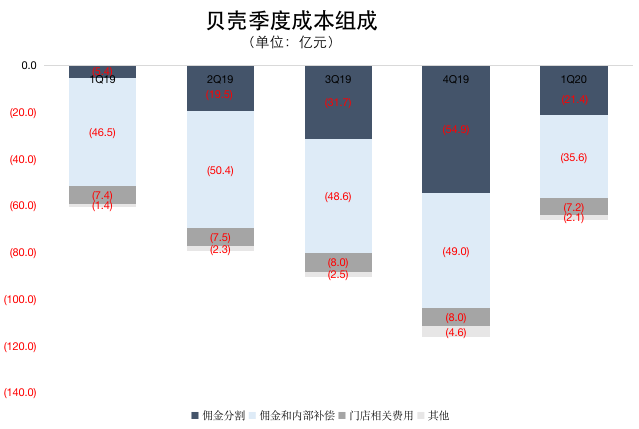 2019年,贝壳对内佣金和提成同比增长了23.3%至194.4亿元,主要是平台通过链家品牌完成的交易量同比增长了13.6%。