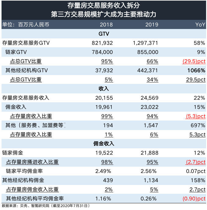 在所有影响因素中,第三方合作伙伴交易规模(GTV)的高速增长正在成为贝壳存量房交易收入增长的最主要推动力。