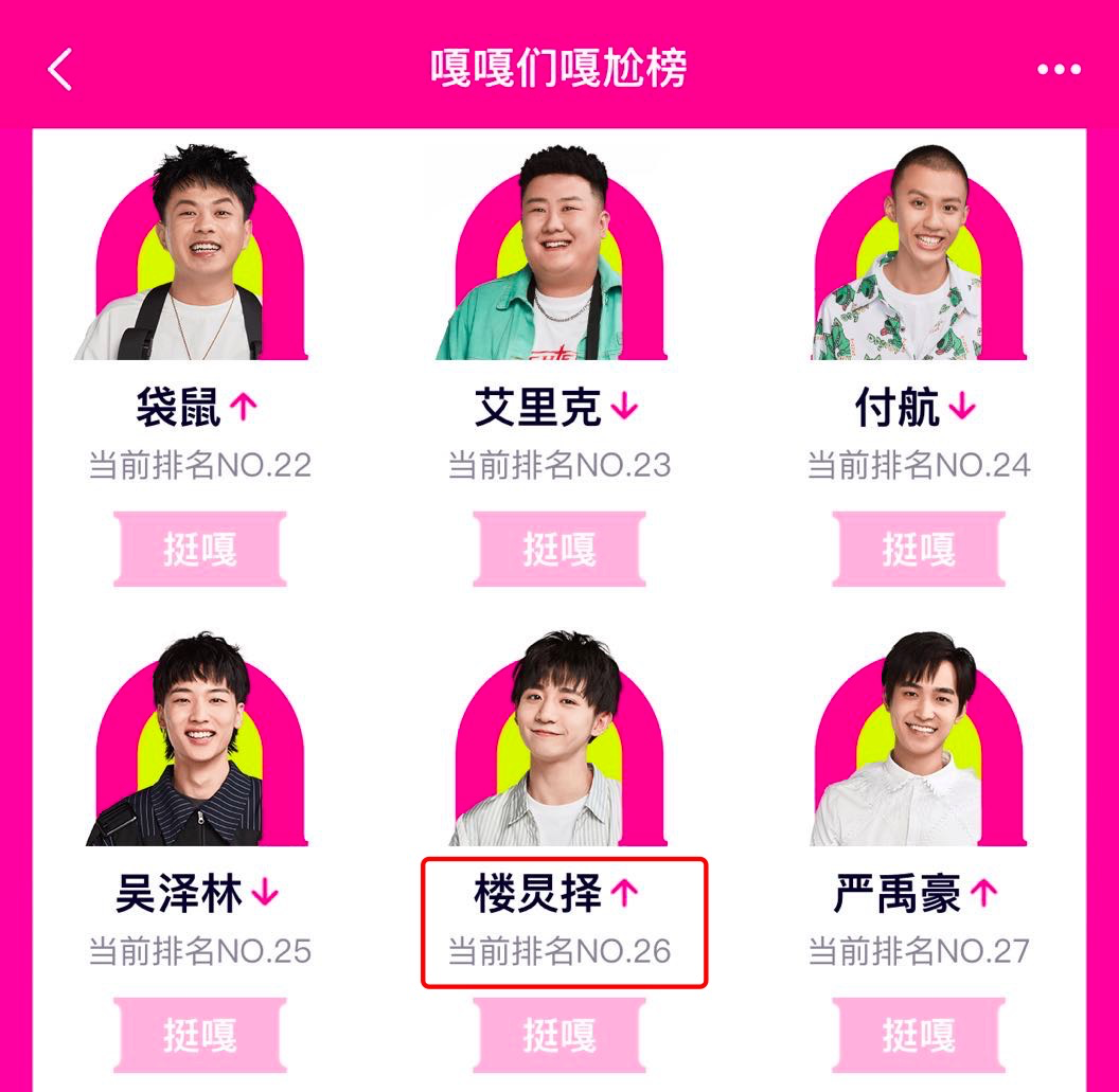 ▲ 截至7月23日0点,楼炅择排在“嘎嘎榜”第26位
