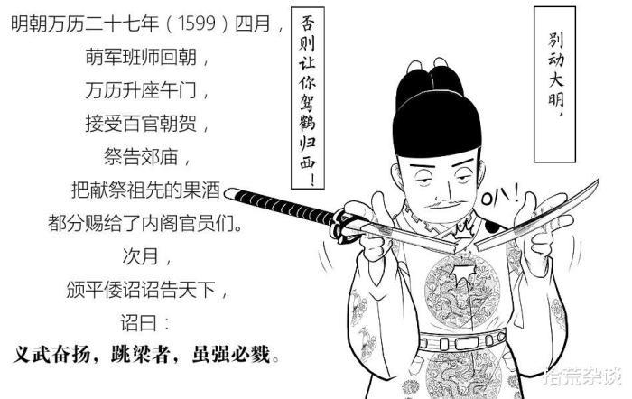 此句出自于明朝神宗皇帝的《平倭诏》,这句话完整的应该是“我国家仁恩浩荡,恭顺者,无困不援;义武奋扬,跳梁者,虽强必戮!”