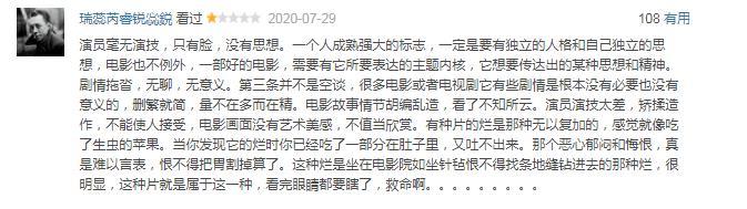 有些观众评价很毒舌,比喻该片很烂,观感就像吃了有虫的烂苹果,吐不出来,胃很难受,也说演员毫无演技,只有皮囊没有思想,看来导演和演员都不成熟,都很稚嫩,监制还是谢飞导演。