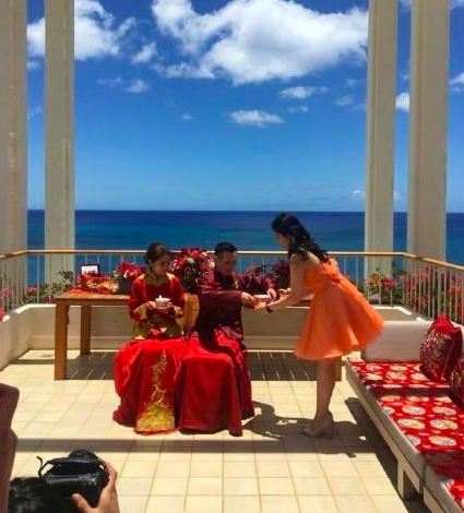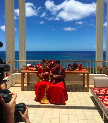 从曝光的昔日安以轩大婚的情形来看,从举办婚礼的那一开开始,陈荣炼就让人觉得非常尊重安以轩对仪式的重视。当时安以轩陈荣炼结婚的日子太阳很猛烈,但是夫妻俩在烈日当空没有敷衍应付,而是在跪着向公公婆婆敬茶以前,先演练一遍。