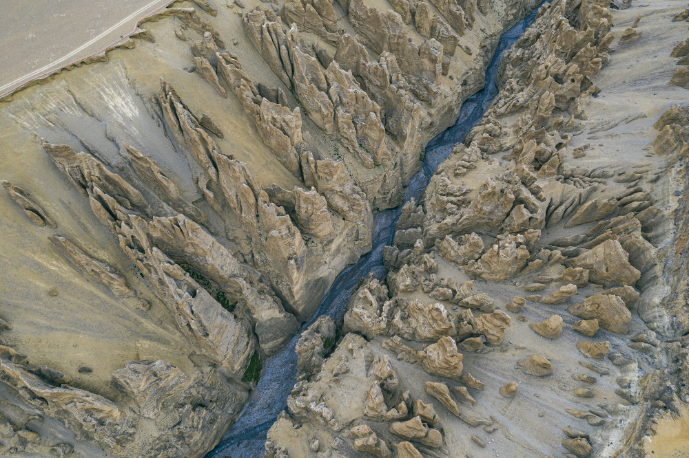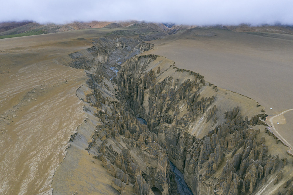 这条贯穿南北的大峡谷,犹如洪荒时代的地裂,从喜马拉雅山北麓一直撕裂到定结湿地。它的成因见证了时间和流水的力量,喜马拉雅山脉每年七八月融化的雪水,汇集成一条河流,经过几十万年的冲刷、切割,导致其边坡产生“卸荷裂缝”,河水再沿着这些裂缝继续侵蚀,就形成了这道大峡谷和千姿百态的峡谷土林。