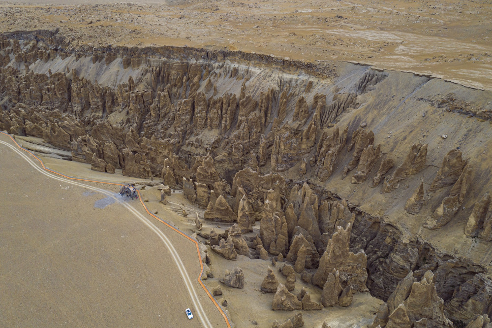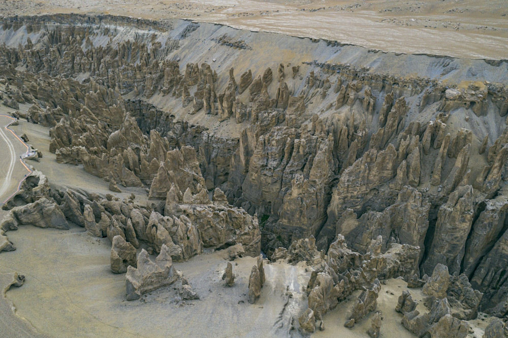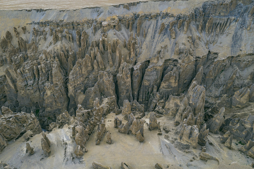 奇林峡大峡谷位于西藏日喀则地区定结县,在喜马拉雅山脉北麓,定结湿地的东南边缘。它的独特之处在于,从原本平坦的地面突然断裂开来,巨大的地沟内是一根根高耸如林的沙土柱,成群排列,千姿百态,壮观奇美。