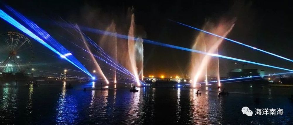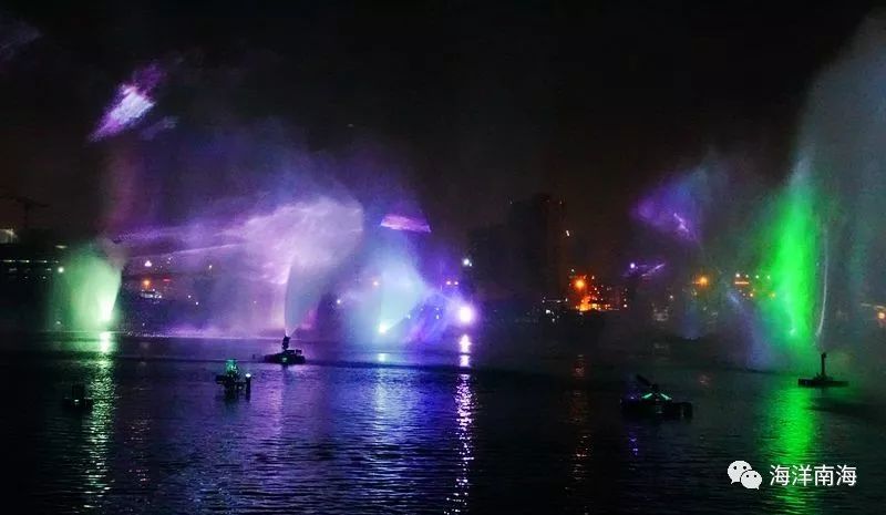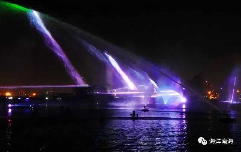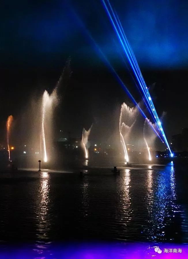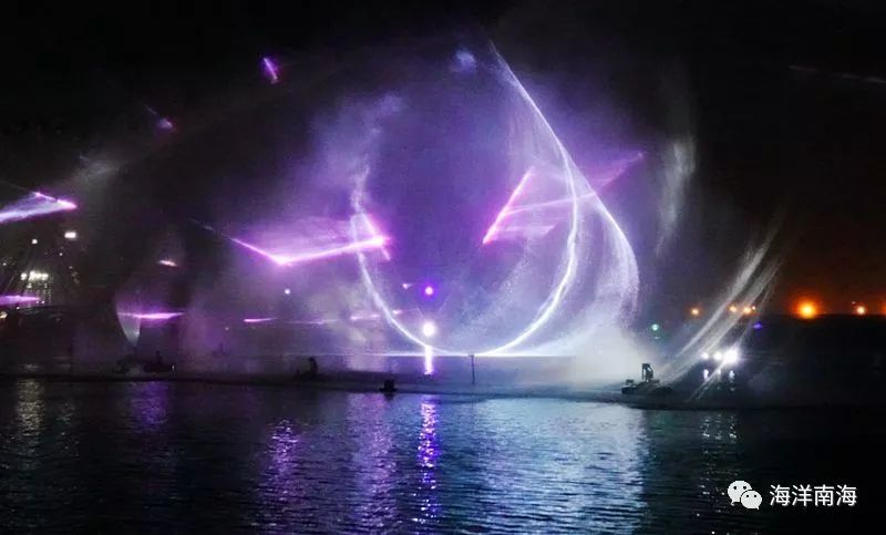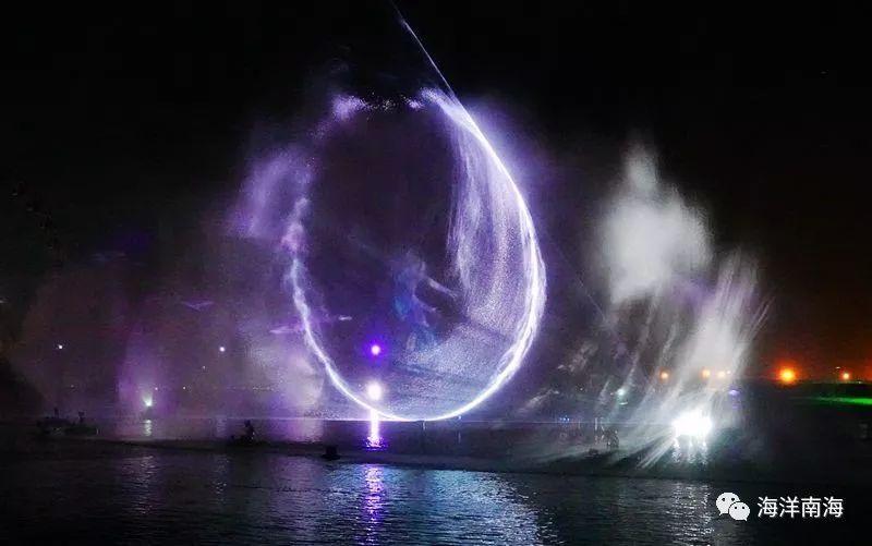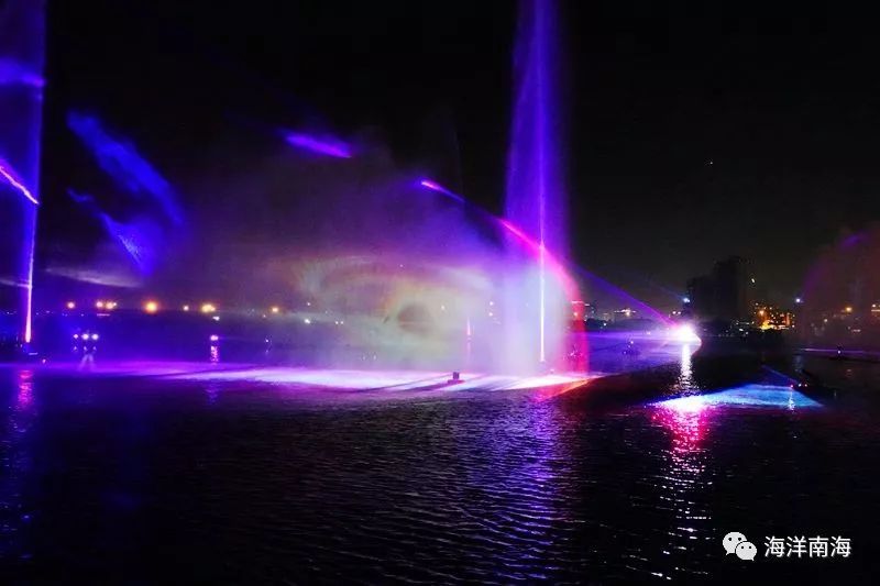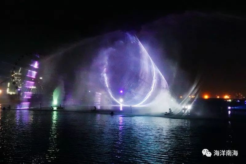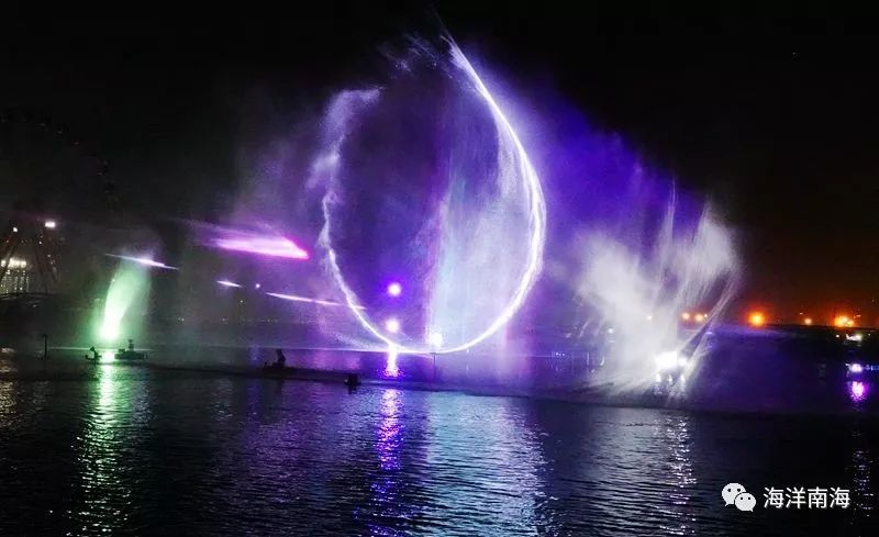 音乐骤然响起,湖面水柱缓缓而起,观众们一阵欢呼。