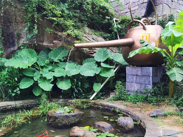 村里的一处景致:大茶壶的水灌到八卦形的池塘里,里面养了一些金鱼。