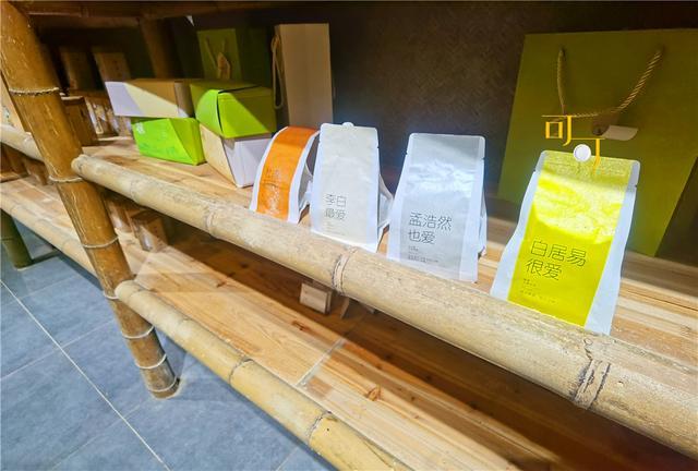 里面放着一些茶叶,包装是设计过的,写着白居易很爱,孟浩然也爱,李白最爱,可惜现在落了些灰尘。