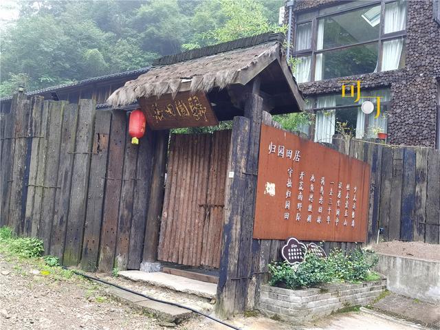这里有一个归园田居的民宿,我们电话打来问过价钱,要1000多元,实在太贵,所以没有选择住在这里。事实上也是柴门紧闭,没有客人。我觉得降一点费用,客人反而会多一点。旁边有农家乐,问了价钱,200元一间房,这个价格还差不多,不过老板娘说最近有几十个学生住在这里过暑假活动,要住两星期,每天管一日三餐的饭,实在累坏了,我们就是想住也不让我们住了。