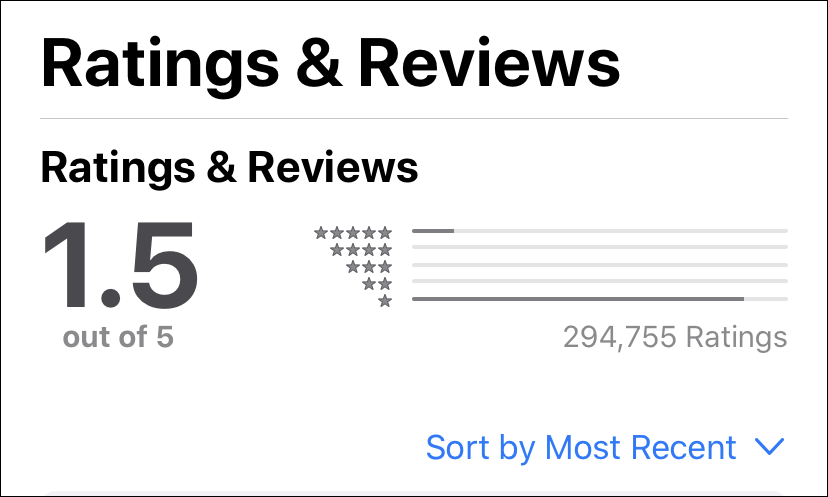 7月初,特朗普竞选app在苹果应用商店的评价区共收到10.3万条一星评论,总体评分仅有1.2。苹果应用商店在发觉后删掉了不少差评,但评分也仅回升至1.5。