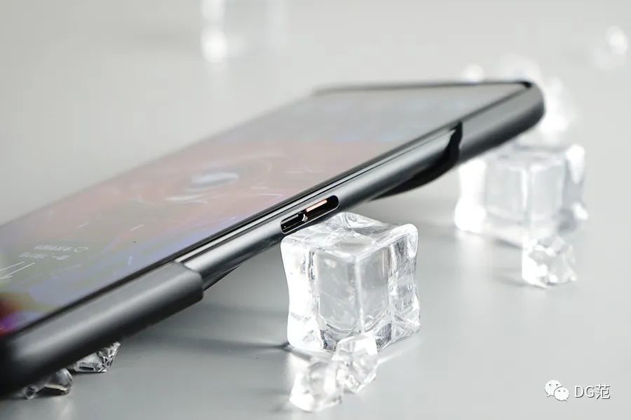 ROG游戏手机3的中框采用铝合金材料,斜切棱角让屏幕与中框的过渡非常的自然顺滑。中框为圆润的弧形配合细腻的表面处理工艺,手感圆润顺滑。接口方面,上、下、右侧边以及背部各有一个MIC孔以达到更精准的收音效果。底部Type-C接口支持数据传输和充电功能,侧边的多功能接口除了可以接驳酷冷风扇3外还支持快充以及数据传输功能,通过Type-C接口可以直接连接投屏设备。