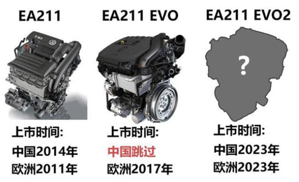 值得一提的是,2023年国产亮相的EA211 Evo发动机并不是目前海外使用的1代版本,而是直接进入EA211 Evo 2代(最大功率160马力)。最快于2022年底国产,2023年初配置到国产的全新高尔夫上,时间上将与欧洲同步。