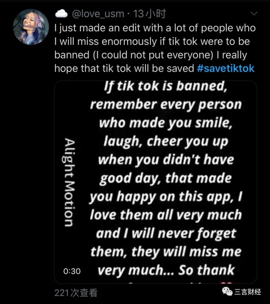 有网友表示自己看了很多TikTok告别视频感到很感伤。