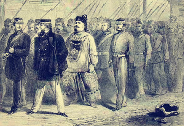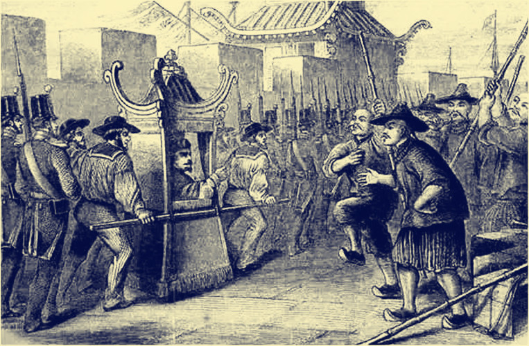 叶名琛拒绝投降,也没有逃跑,而是戴好顶戴花翎,穿上正式官服,端坐在两广总督府的大堂之上,等着英法联军的到来。