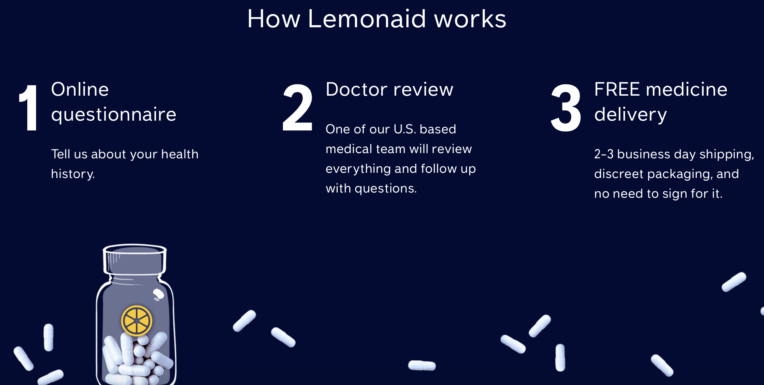 首先,「Lemonaid Health」会进行在线的问卷调查,了解患者的病史。之后,该平台的医生会评审,并建立医疗小组,全面检查患者的身体情况,实时地跟进问题。该公司还提供了免费的送药服务,在用户下单后,它会在 2-3 个工作日内发货,为了保护药物的质量,该公司会谨慎地包装。