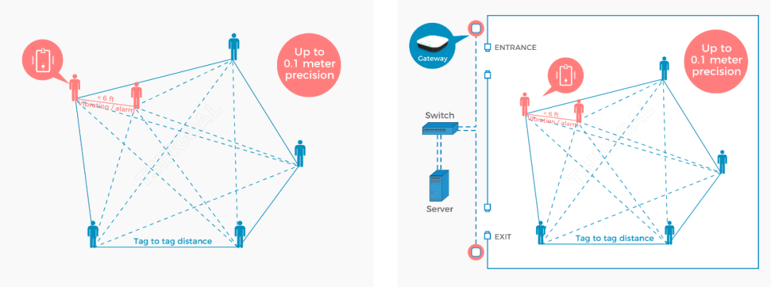 保持安全的社交距离在海外市场中是复工的常见要求之一。在观察到这一需求后,在室内精准定位方面拥有技术优势的清研讯科开发出了一款新产品。这款社交距离监测设备可以通过手环、工卡等物理形式,提醒实时保持社交距离。一旦社交距离小于安全距离时,清研讯科的检测设备就会发出提示。除此之外,通过配套软件,对于清研讯科的用户来说,如果有员工不幸感染疫情,软件中的历史数据可以回溯到比如过去14天,以便企业迅速做出反应,排查密切接触人员,做出相应的隔离方案。