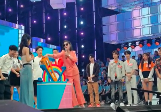 人送外号“赵小刀”的赵丽颖,她的怼人功底我们早在《偶像来了》里就有领会,这一环节她面对乐华老板杜华,将自己的怼人功底展示到了极致。开场杜华就用不太标准的普通话直接放话:“造(赵)丽颖,再厉害也得背我们家王一博。”这句话不仅逞了口舌之快还紧跟时事热点,将刚放出的《有翡》片花里的镜头联系了起来。