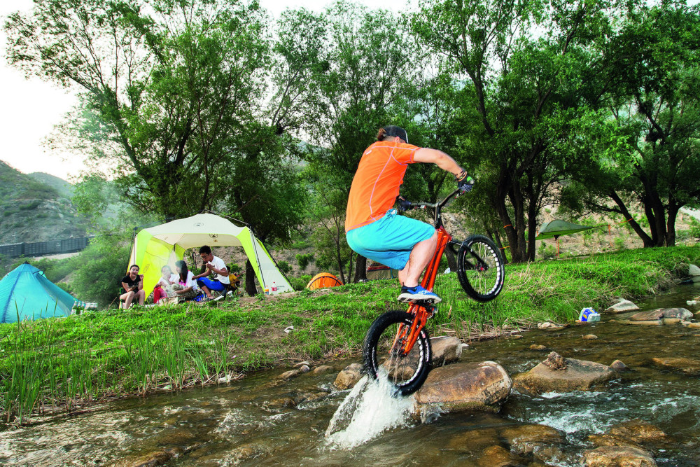 晚餐时刻,大家热热闹闹地吃了一顿烧烤大餐。酒足饭饱之后,驴友“夏天”主动请缨要给大家表演“水中小轮车特技”助助兴。说实话,我真是很羡慕他,要知道这个胡子拉碴的粗汉子玩小轮车的时间已经有十多年了,虽然我以前就知道他有这手绝活,但今天却是第一次现场观摩。