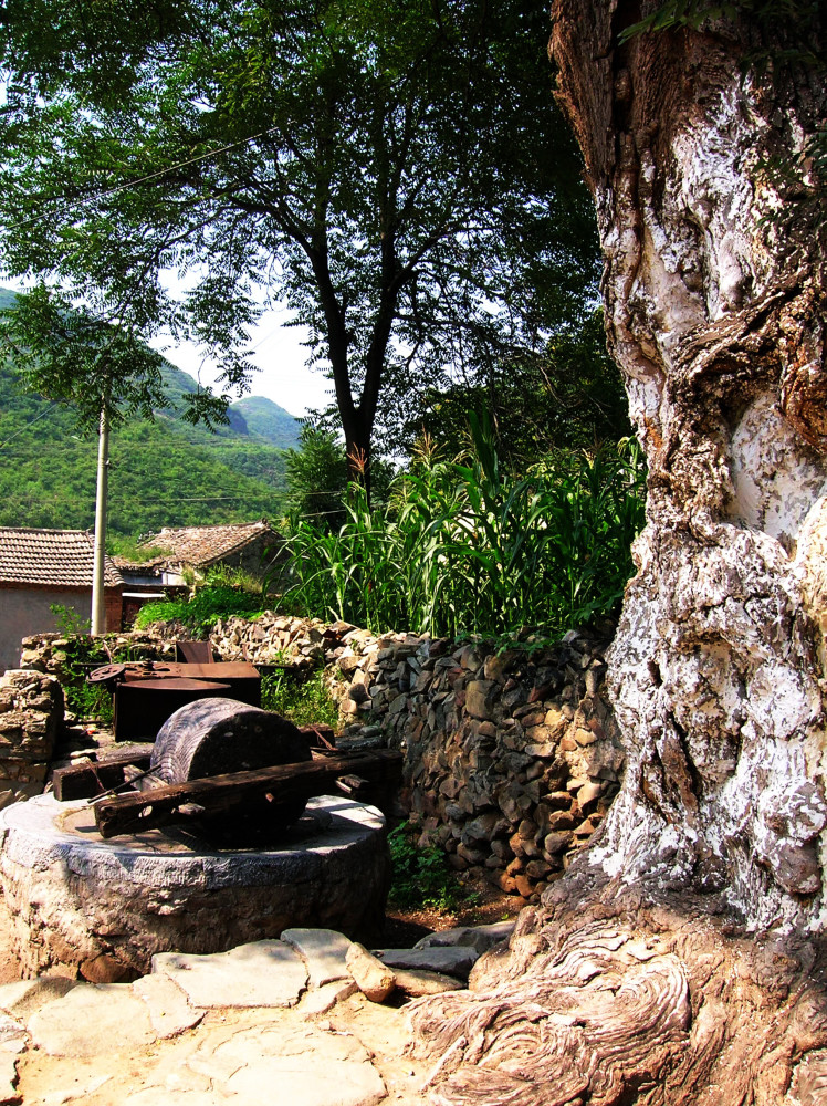 露营装备收拾妥当之后,我们驾车沿着国道109 线一路向西,驾临被大山包围的雁翅镇碣石古村。古民居、古槐、老井、巨石就是碣石古村最值得探访的“村宝”。村里的老宅院很多,每一家都很古老。在和村民的交流中才知道,这些房子所用的砖瓦灰及石料木材,全部就地取材,而且古村里的房屋多有上百年的历史,有的甚至达到240年左右的历史。碣石村最值得看的便是水井,传说原有72 眼井,现存56 眼,许多还保存完好,水质清冽。