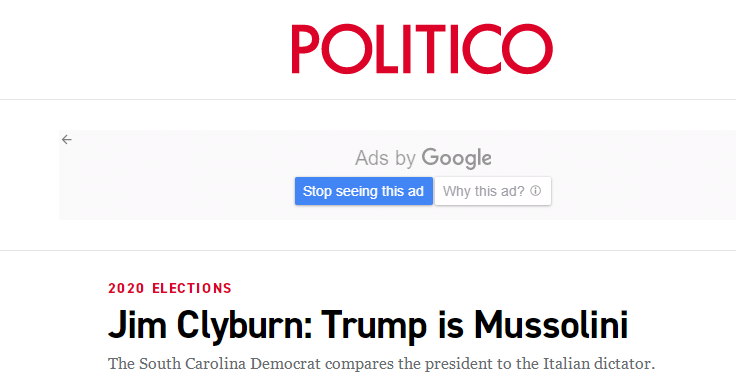 美国“政客”网站报道称,克莱本在采访中一度将特朗普与法西斯独裁者贝尼托·墨索里尼相比较。他说:“我非常强烈地认为,特朗普采取了强硬的手段,我强烈地认为他就是墨索里尼。”
