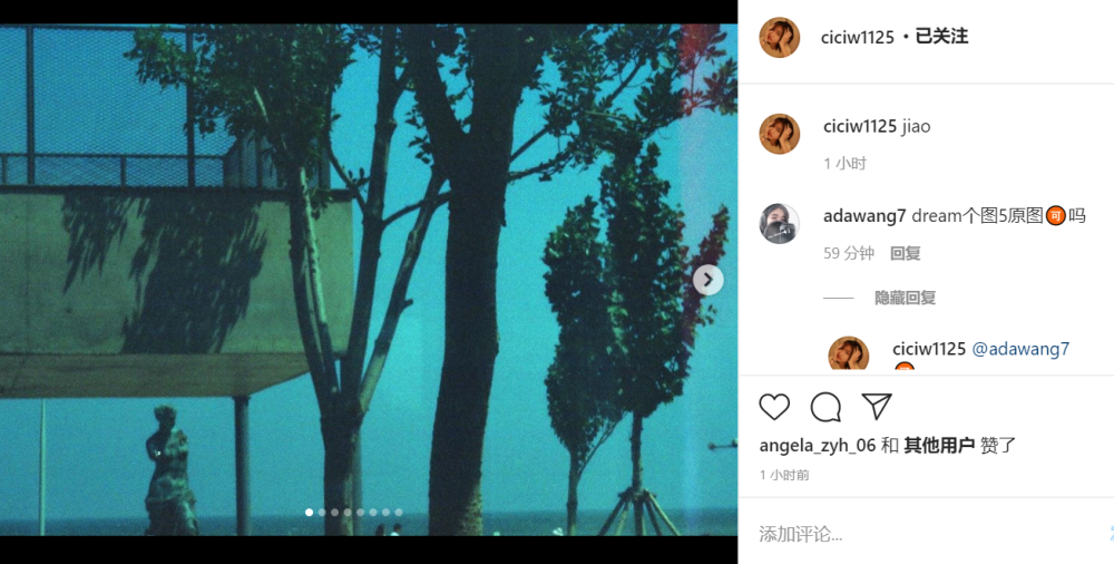 作为汪峰的女儿,章子怡的继女,小苹果一举一动都备受关注。想必也是因此,她即便和很多同龄女孩一样喜欢分享,却又不得不刻意掩饰。这张风景为主体的照片中,小苹果的特写是在焦点之外,画面高糊,但仍然难掩高冷气质。
