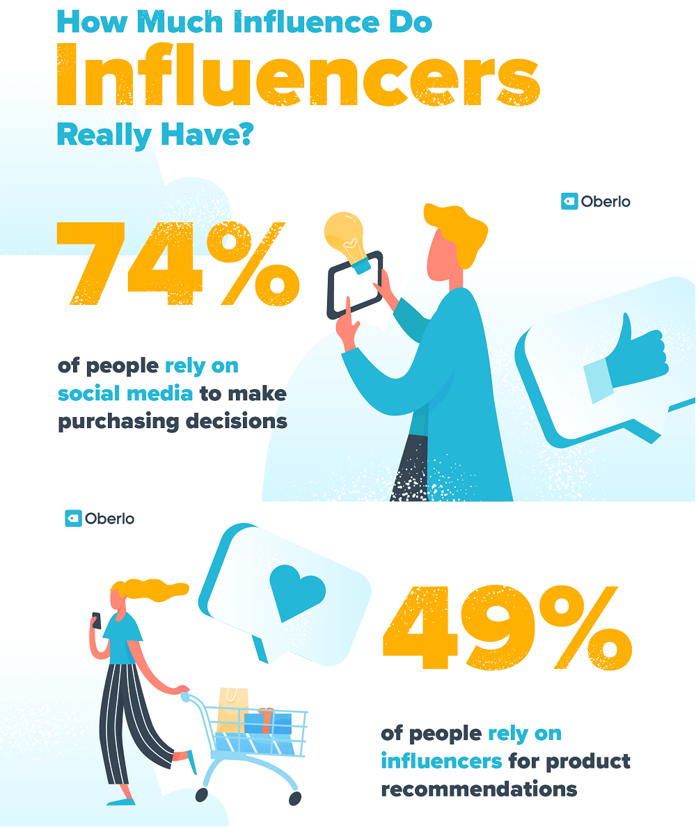 注:全球范围内,74%的用户依靠社交媒体进行购买决策,49%的受众依靠网红推荐进行购买决策(来源:Oberlo)