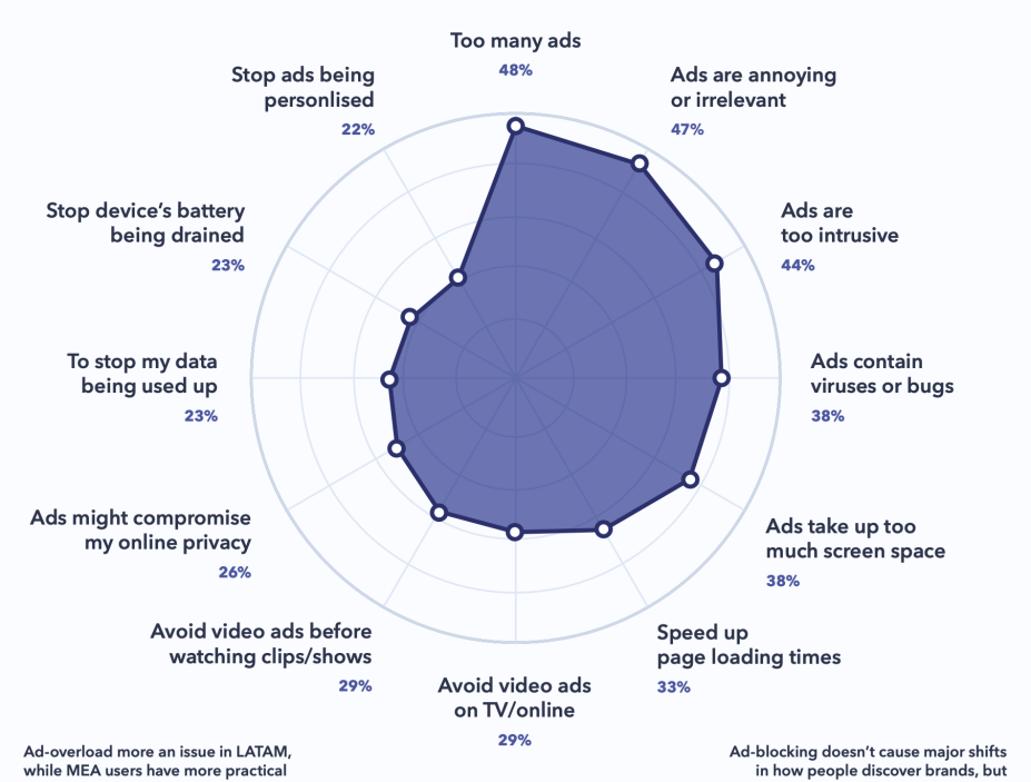 注:12个受众屏蔽传统演示类广告的原因(来源:GlobalWebIndex)