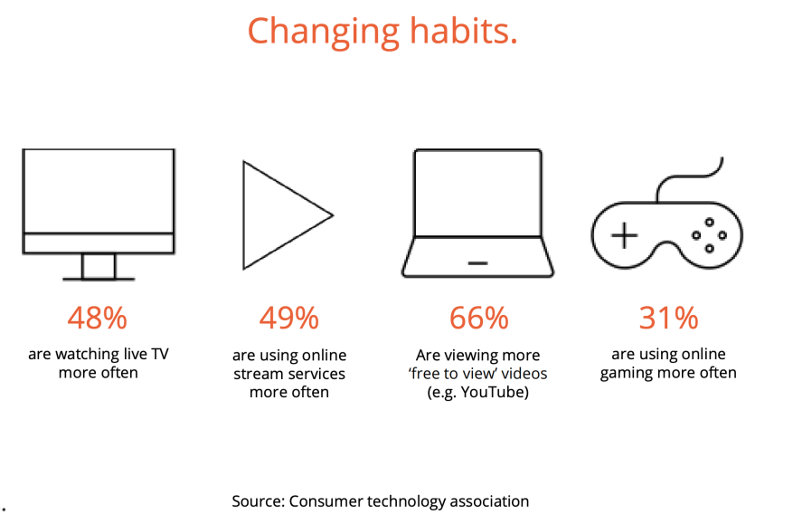 注:疫情期间,用户媒介接触习惯发生改变(来源:Consumer Technology Association)