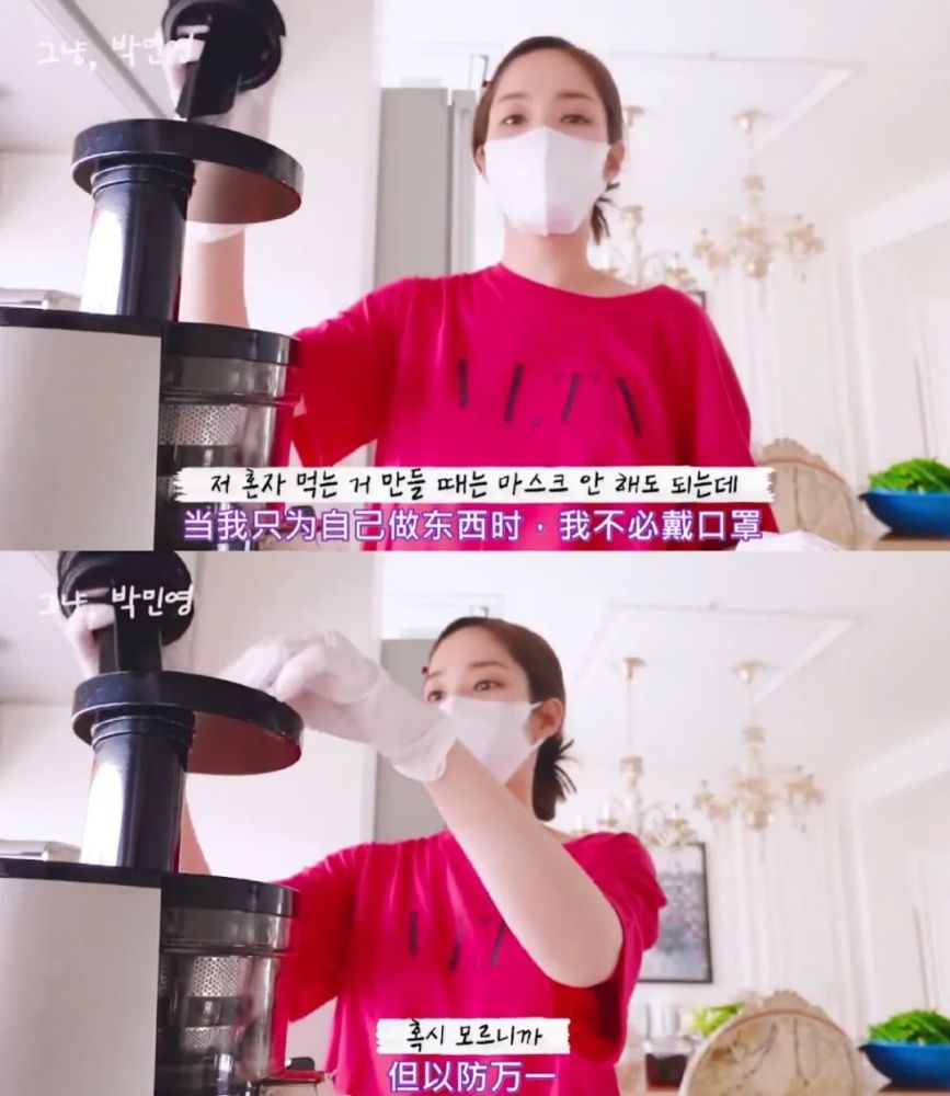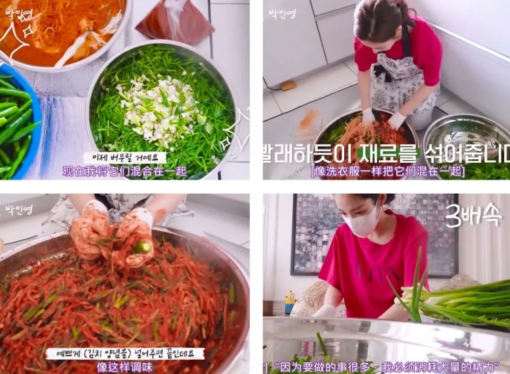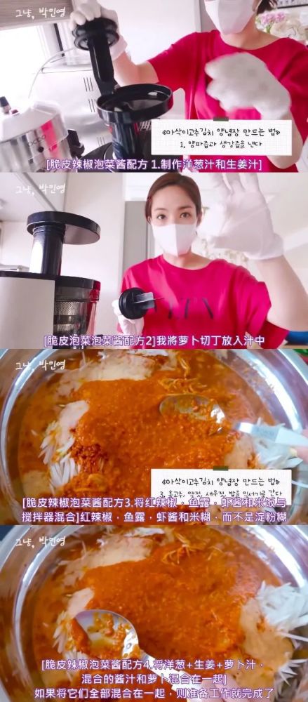 制作过程中,欧尼还贴心的带上口罩,因为做好的泡菜还要分享给亲朋好友。简直就是人间小厨娘!小天使!(就问谁不想和姐姐做朋友)