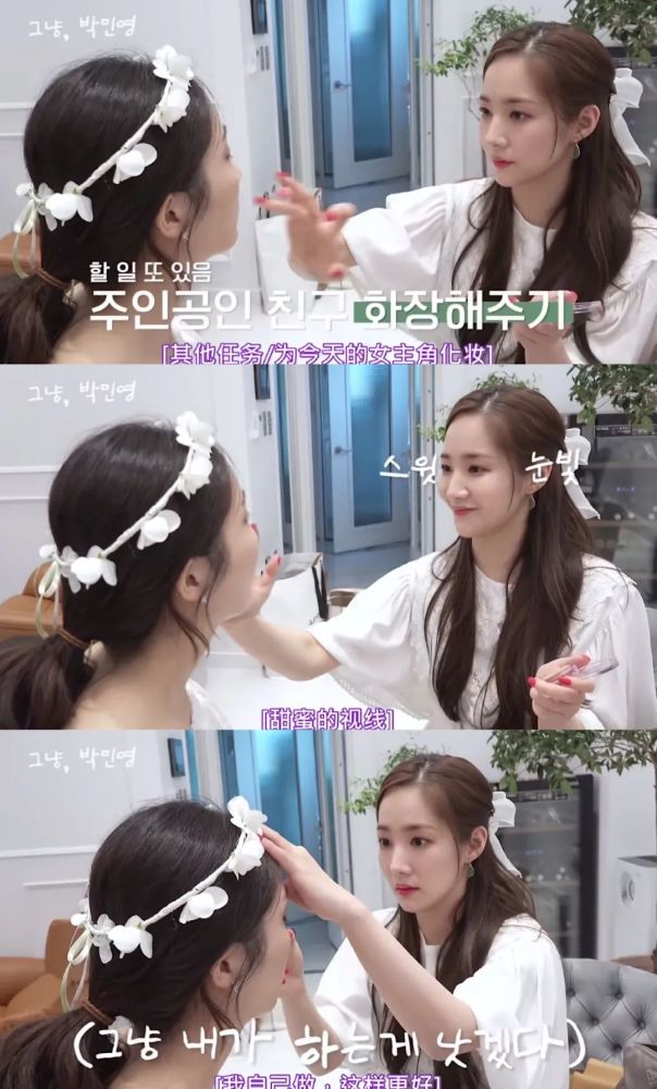 即便过程中忍不住和朋友有说有笑的“打闹”,依然完美的完成了妆容,是必须要称赞专业性的朴敏英老师了!