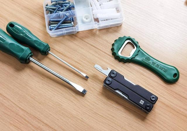 主刀的反面是一字螺丝刀,平时修理家用小电器正好,还集成了瓶起子的功能,正好夏天喝啤酒用得上,开盖卡位精准也省力。