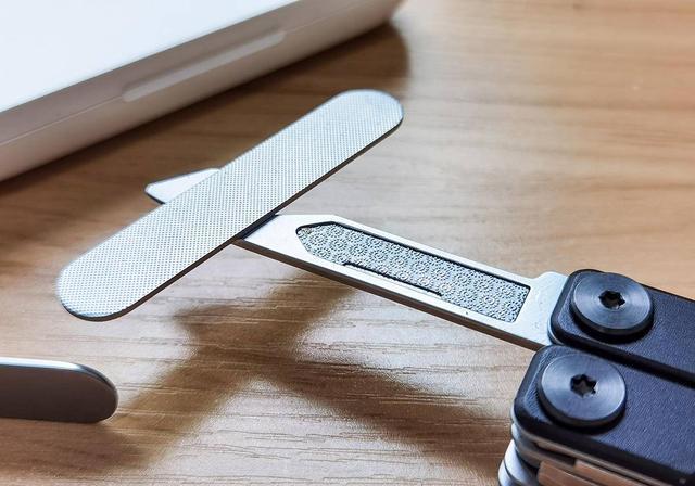火候mini多功能刀有两个新功能,手机卡针和眼镜护理螺丝刀,是专门为都市白领设计的,虽然不常用,但是用到的时候是最需要的。尤其是眼镜护理螺丝刀,很多办公族都有戴眼镜的习惯,当镜腿儿松的时候,正好派上用场。