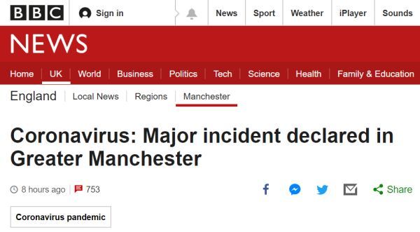 今天,大曼彻斯特政府宣布启动疫情“重大事件(Major incident)”,为了更好地帮助各机构“尽可能有效地”做出反应,包括动用军队和额外的资金等。