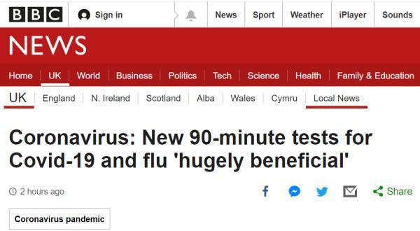 说到核酸检测,英国政府在检测能力方面也有了新进展,成功推出了90分钟出结果的快速病毒检测工具。