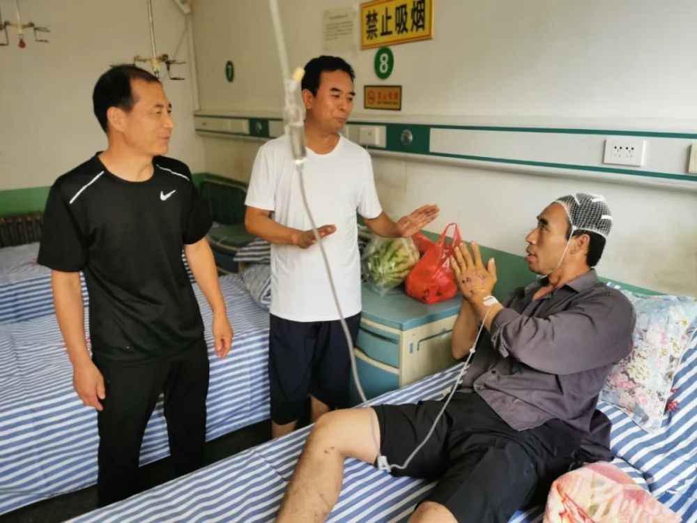和曾在部队当医生的范英祥为伤者紧急包扎。