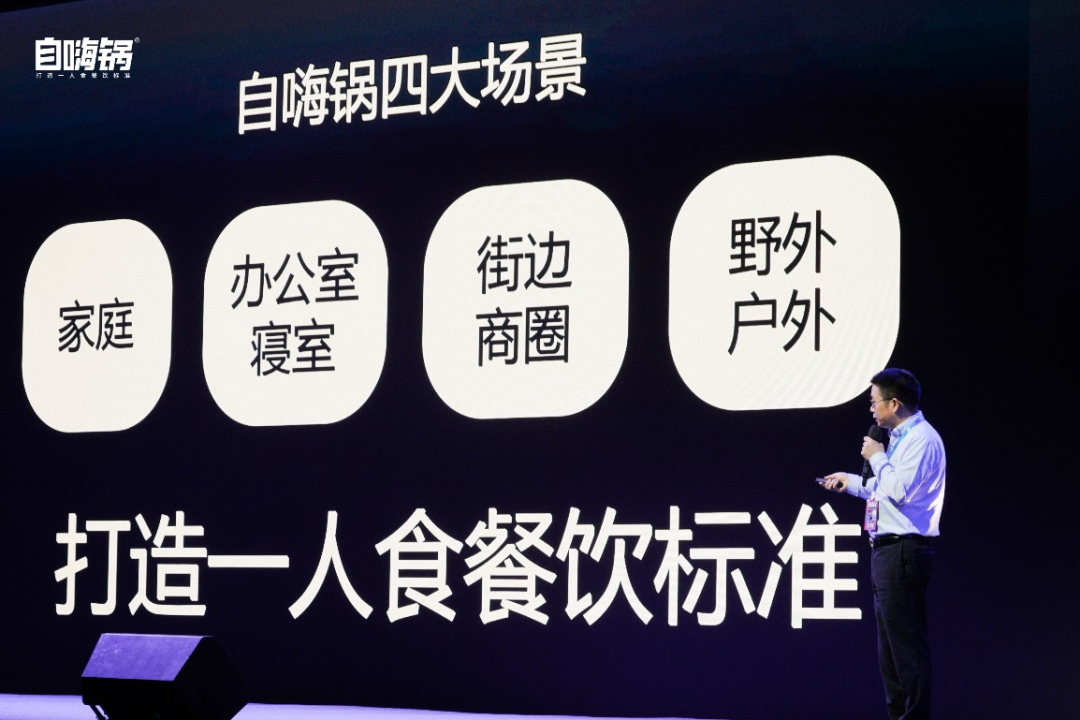 因为看好"一人食"经济的长期发展,自嗨锅的整体策略就是围绕"一人食"展开。但相比"单身经济",一人食经济具备更广泛的食用场景,除了单身人群,一个人的时刻,比如加班、宵夜、户外等,都是自嗨锅能覆盖的"吃"的时刻。